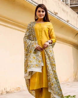Yellow Chanderi Kurta Set